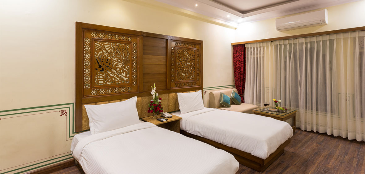 Aaram mahal with this unique concept has opened its doors for the travellers and tourists to take the guests into the royal era , also highlighting the story and history associated with the different musical instruments with its theme based Mahal rooms. Pachar Group with its second theme based hotel in Udaipur and third in Rajasthan offers the guests 37 Mahal rooms highlighting the history associated with different musical instruments ranging from Veena, flute, harmonium and many more.